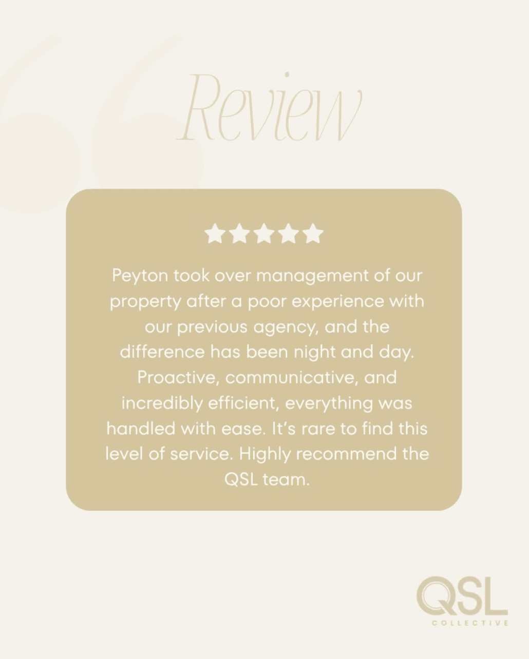 "The team’s communication is always clear, proactive, and professional. I now trust QSL Collective with all six of my properties and wouldn’t go anywhere else."