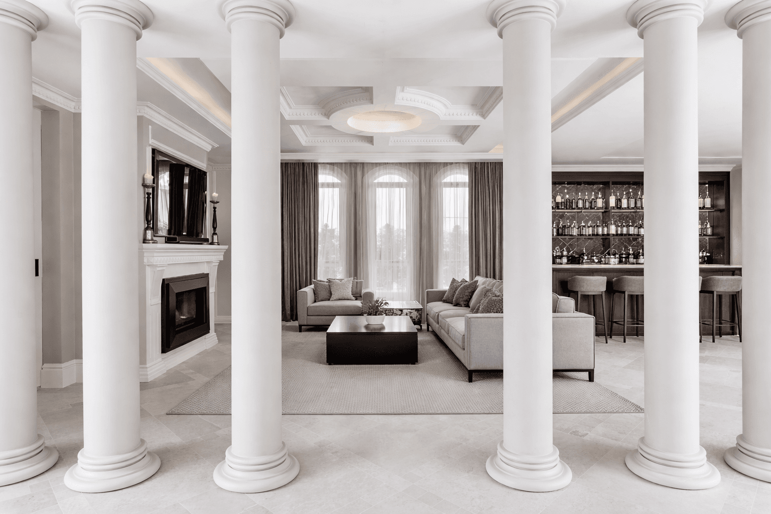 • Grand architectural design with soaring ceilings and statement columns